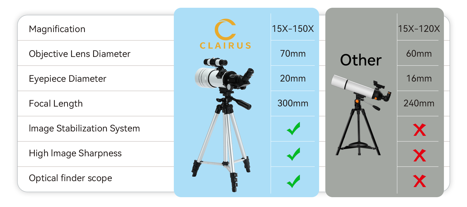 This led to Clairus. The brand promises to use advanced optics and precision engineering to deliver clear, crisp, and comfortable astronomical observations.Clairus’s mission: To help everyone explore the universe with clarity, ease, and precision.