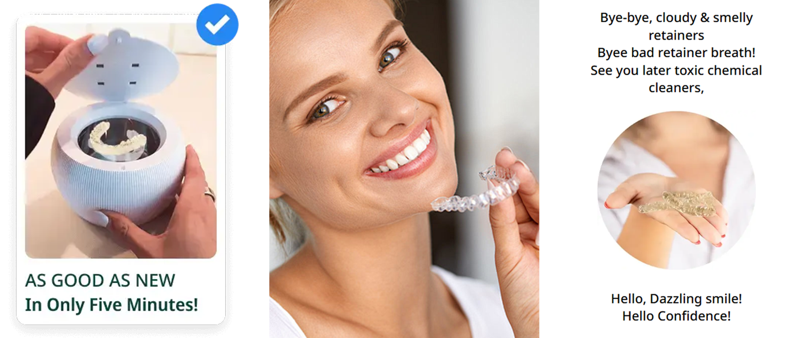 Our Clairus utilizes ultrasonic waves to create microscopic bubbles that gently but effectively remove bacteria, plaque, and food residues from your dental appliances.